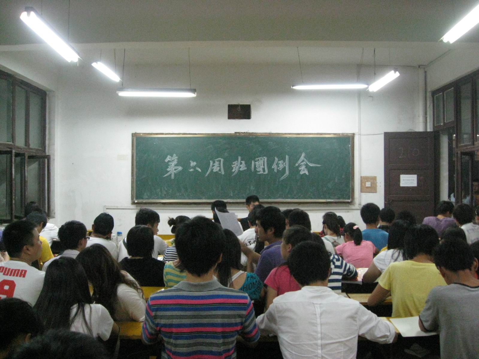 2011年10月11日 晚上七点,我系团总支学生会在教学楼210教室组织2010级和2011级各班团召开了班团例会。系团总支书记王雪舟老师、学生会主席团各成员及各部门部长出席了本次会议,会议由团总支副书记李舒主持。