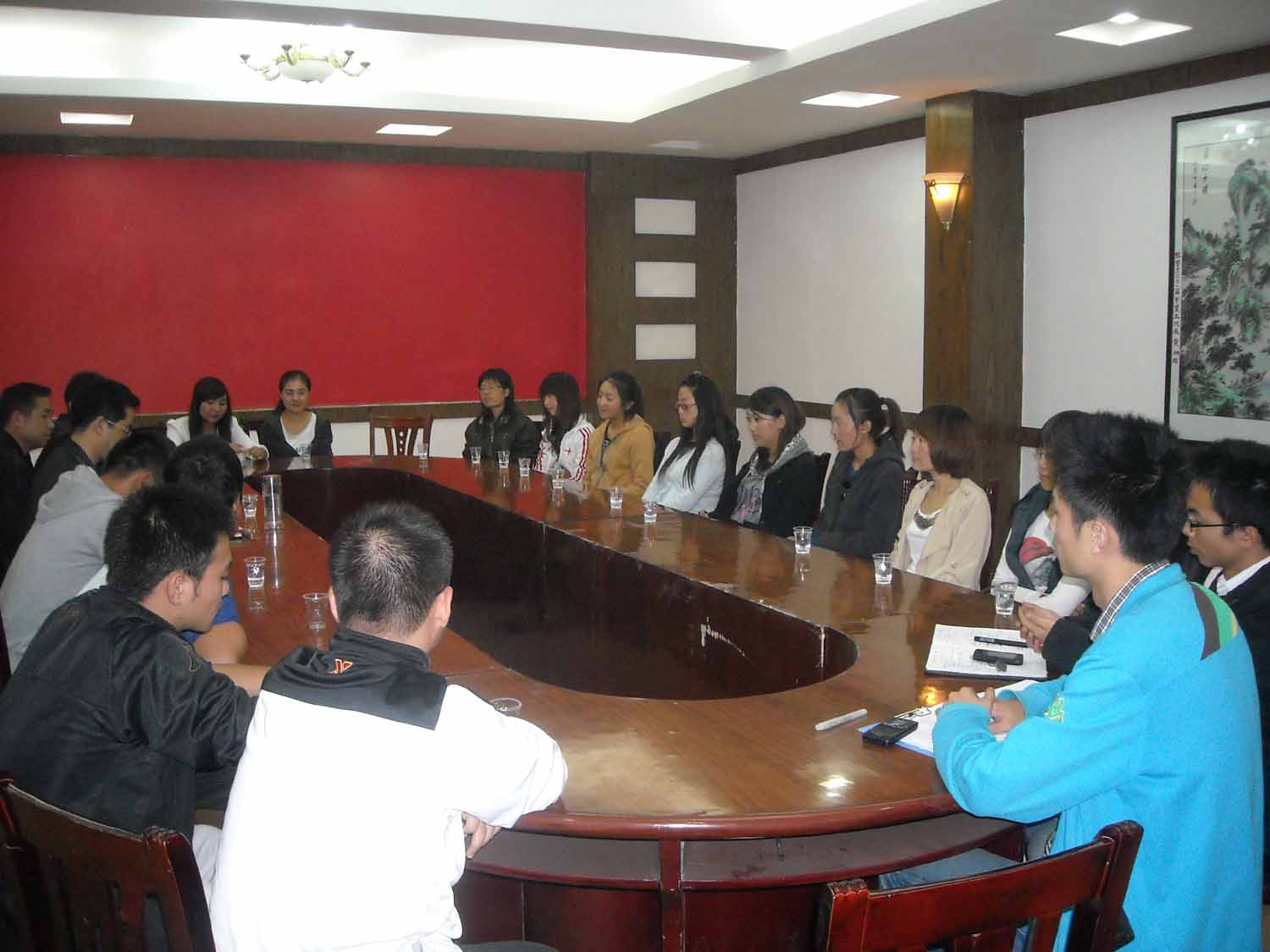 月21日晚上,经济与管理系在系会议室召开了少数民族学生座谈会,来自6个民族的15名新生、系党总支书记袁勤、副书记黄春喜、辅导员张勇出席了座谈会。